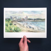 A signed giclée print of an original drawing of Wardie Bay, Edinburgh.